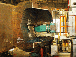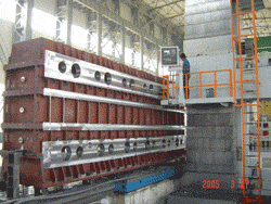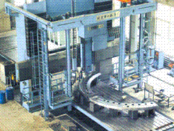 正在加工弧形齿圈用于全国最大的飞机风洞实验台(右)