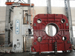 正在加工全国最大减速机箱体(左) | 转炉倾动装置二次减速机箱体(右)